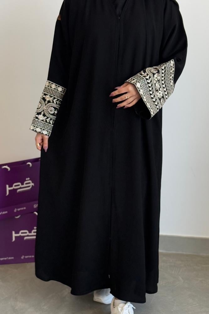 - تصميم أنيق وفخم: التطريز الذهبي الرائع على الأكمام يضيف لمسة من الفخامة والرقي، وهذا ما يجعل العباية تبرز بأناقة فريدة ومميزة.