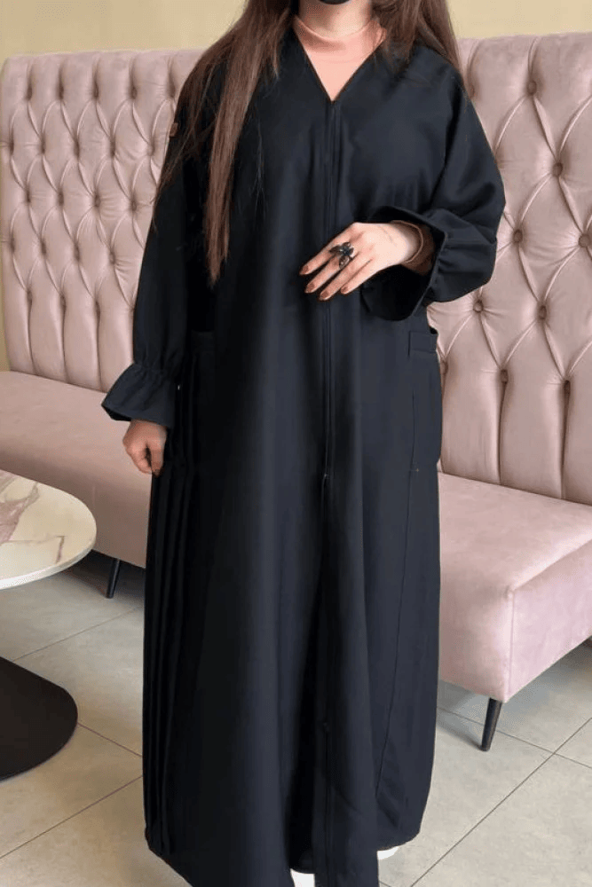 تأتي هذه العباية مع جيوب سوداء تضيف لها لمسة عصرية وعملية، مما يجعلها مثالية للاستخدام اليومي وتعتبر العباية هي أفضل انواع العبايات فهي خيارًا ممتازًا لأولئك الذين يرغبون في إضافة لمسة من التميز والراحة في أزيائهم اليومية.
