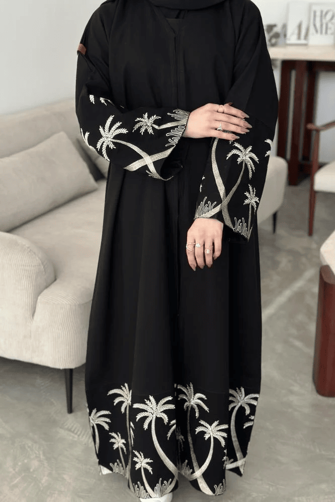 عباية النخلة مصنوعة من قماش عالي الجودة يجمع بين النعومة والمتانة، مما يضمن لكِ الراحة طوال اليوم. تتميز بتطريزات ذهبية دقيقة على شكل نخلة تزين الأكمام وأطراف العباية، مما يضيف لمسة من الرقي والفخامة و يأتي اللون الأسود الكلاسيكي ليجعلها مناسبة لجميع المناسبات، ويمكن تنسيقها بسهولة مع مختلف الإكسسوارات كما تتوفر بجميع المقاسات لتناسب مختلف الأذواق والأجسام، مما يجعلها خيارًا مثاليًا لحضور المناسبات الخاصة والحفلات الرسمية.